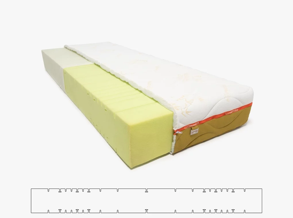 ✔ Udobnostne cone penastega jedra so oblikovane s pomočjo CNC rezalne tehnologije. Vzorčno shemo rezov najdete med fotografijami izdelka.